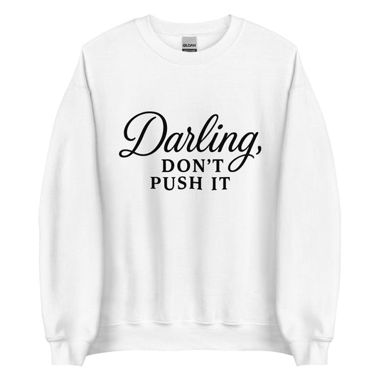 Darling, Don’t Push It Sweatshirt (Black Font) – Women’s Cozy Crewneck (Unisex)