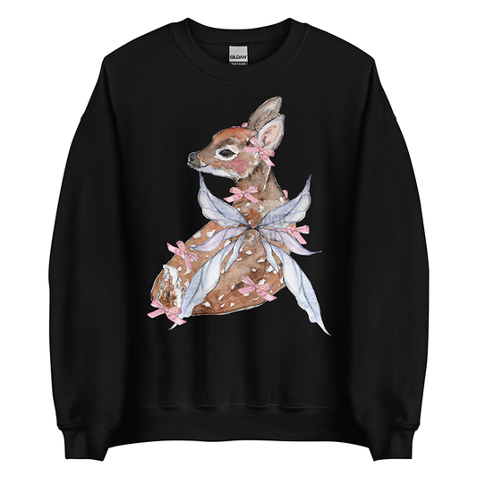 Nocturne Fawn (Black) | Coquette Fawn Women’s Sweatshirt | Watercolor Deer Art Pullover (Unisex)